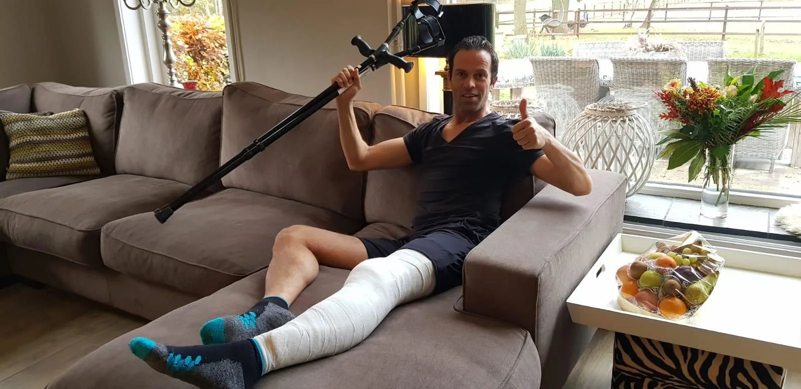 De knie van Nijhuis zit de komende week in het gips (zie foto), daarna krijgt hij loopgips en wordt duidelijk hoe lang hij uit de roulatie is. Nijhuis: "ik hoop natuurlijk zo snel mogelijk, maar het kan ook zijn dat ik tot en met de winterstop niet op het veld sta. Bij de KNVB zeiden ze al dat het niet erg is als ik er een weekje langer uit lig. Ze zijn er zeker niet gebrand op dat ik terugkom, hahaha".