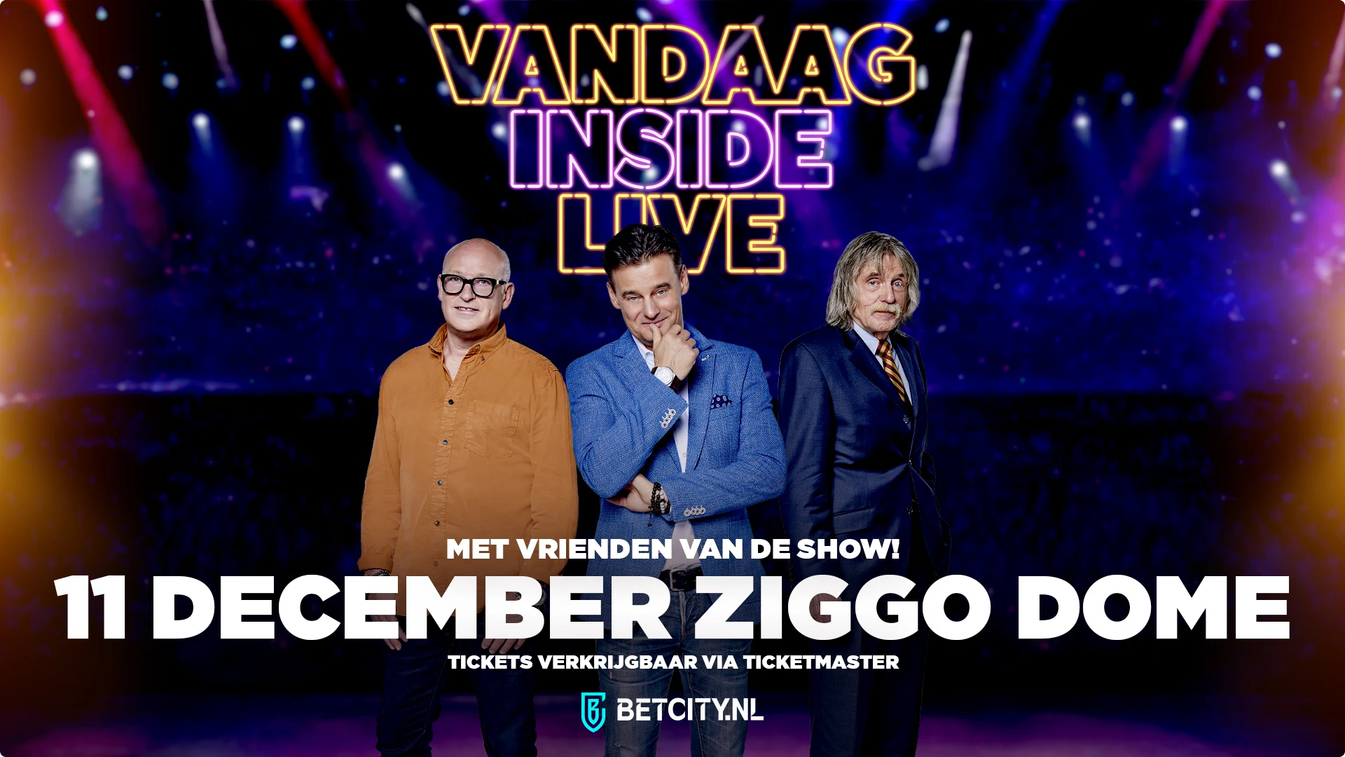 Op zondag 11 december vindt er vanuit de Ziggo Dome een live editie plaats van Vandaag Inside. Het wordt een grote liveshow speciaal voor liefhebbers van het tv-programma van Johan Derksen, Wilfred Genee en René van der Gijp. Kaarten zijn nu »HIER« te koop!
