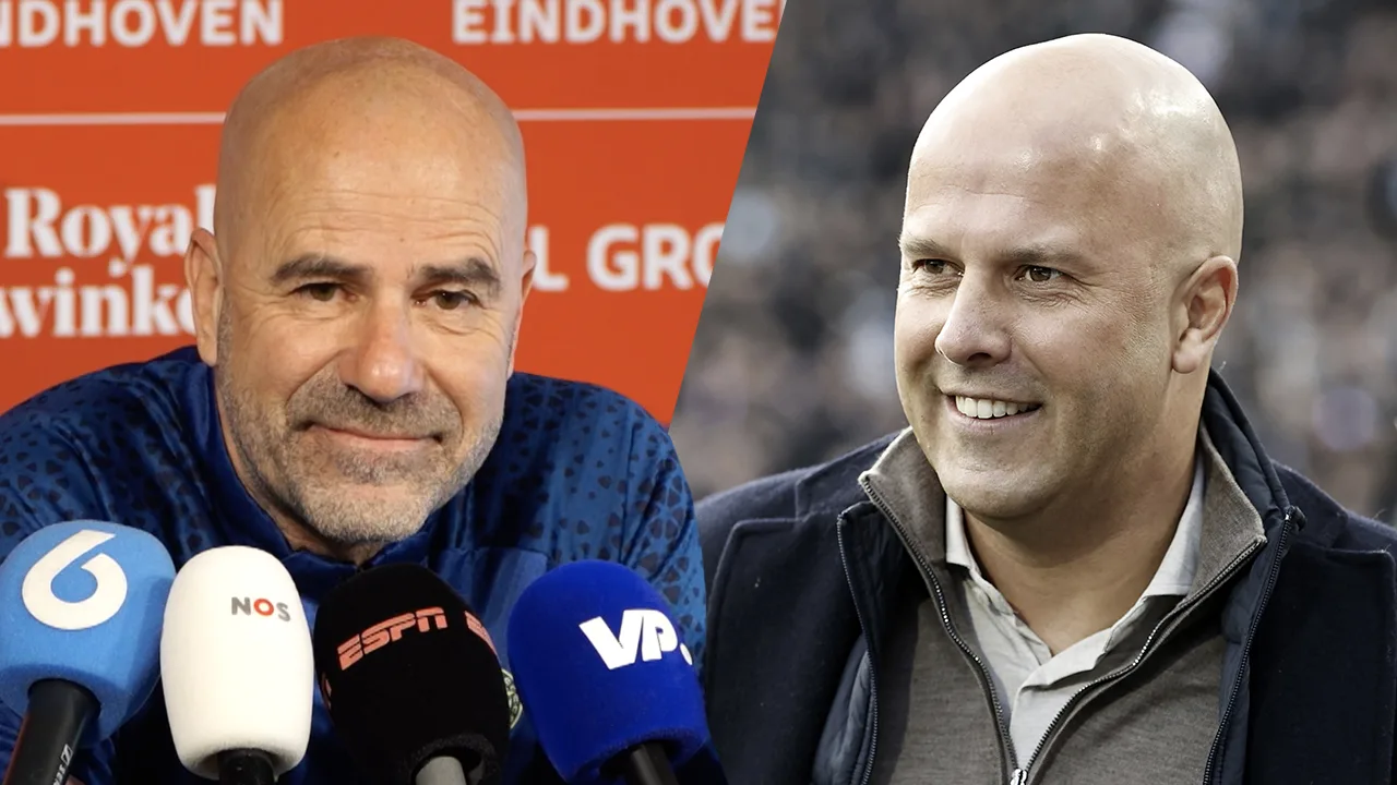 PSV-trainer Peter Bosz reageert op de persconferentie in aanloop naar het duel met sc Heerenveen op de interesse van Liverpool in Feyenoord-trainer Arne Slot.