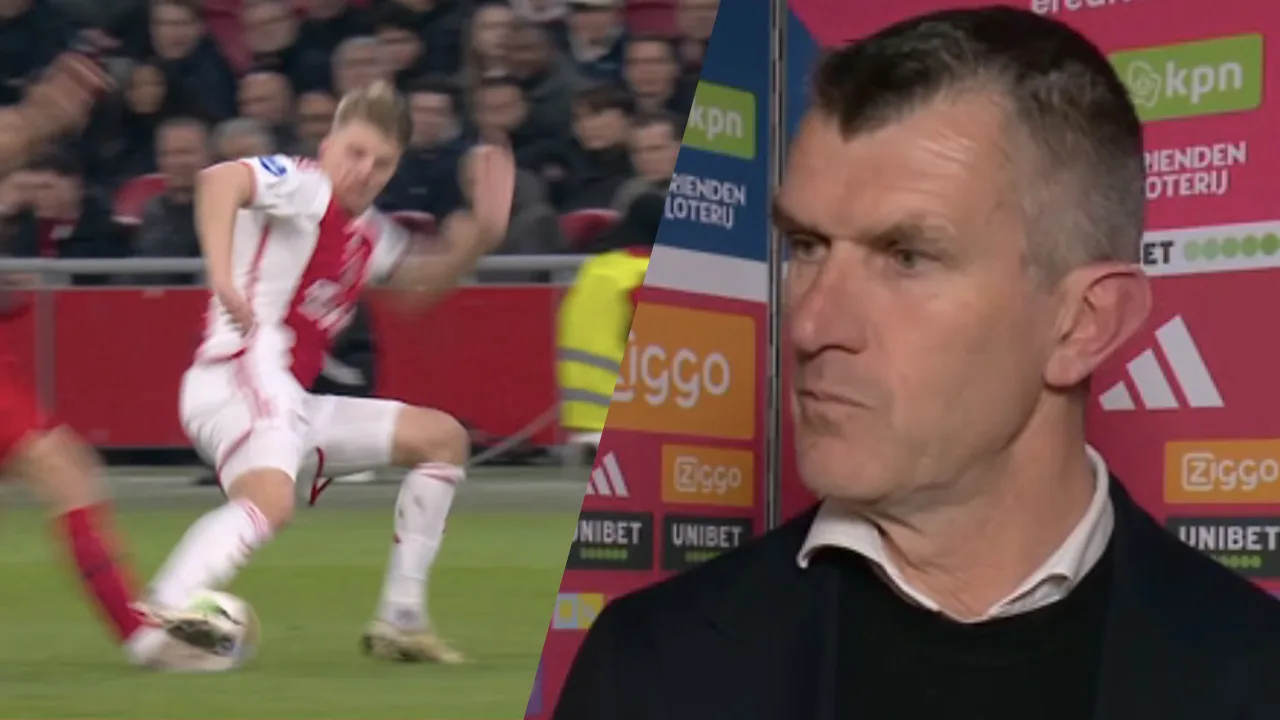 Marinus Dijkhuizen was niet blij na afloop van het duel tussen Ajax en Excelsior (2-2). Volgens de Excelsior-trainer had Ajax-verdediger Anton Gaaei een rode kaart moeten krijgen, na een charge op Julian Baas. "100% rood. Ik weet niet wat de VAR meneer Van der Laan aan het doen was, maar dat was echt ongekend."