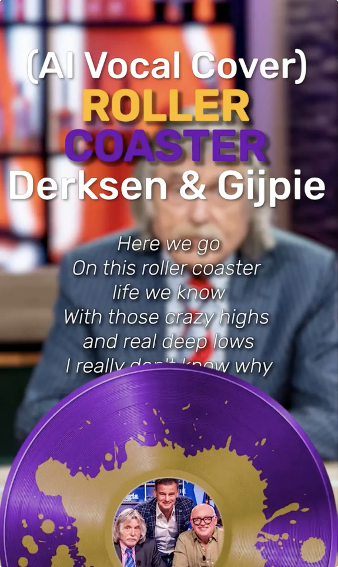 TikTokker @nietgertverhulst heeft opnieuw toegeslagen met een Artificial Intelligence-cover met Johan Derksen en René van der Gijp in de hoofdrol. Nadat het Vandaag Inside-duo eerder deze week het nummer 'Sexy Als Ik Dans' van Nielson zong, covert Johan nu 'Roller Coaster' van Danny Vera, met René op de tweede stem.