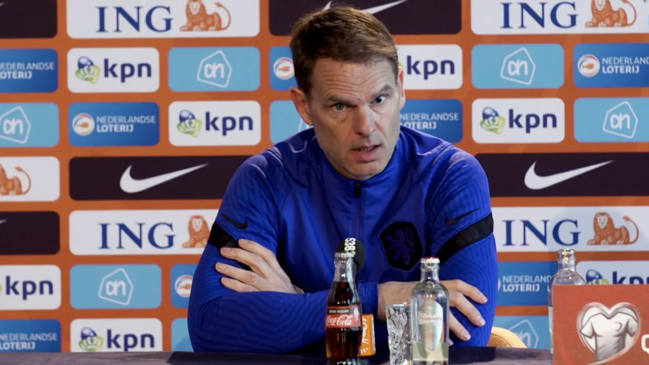 Bondscoach Frank de Boer op de persconferentie in aanloop naar het WK-kwalificatieduel met Gibraltar.
