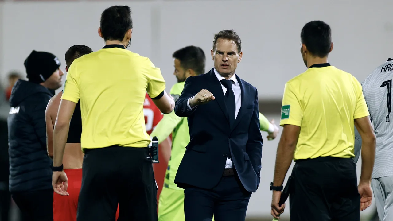 Bondscoach Frank de Boer na afloop van het gewonnen WK-kwalificatieduel met Gibraltar.