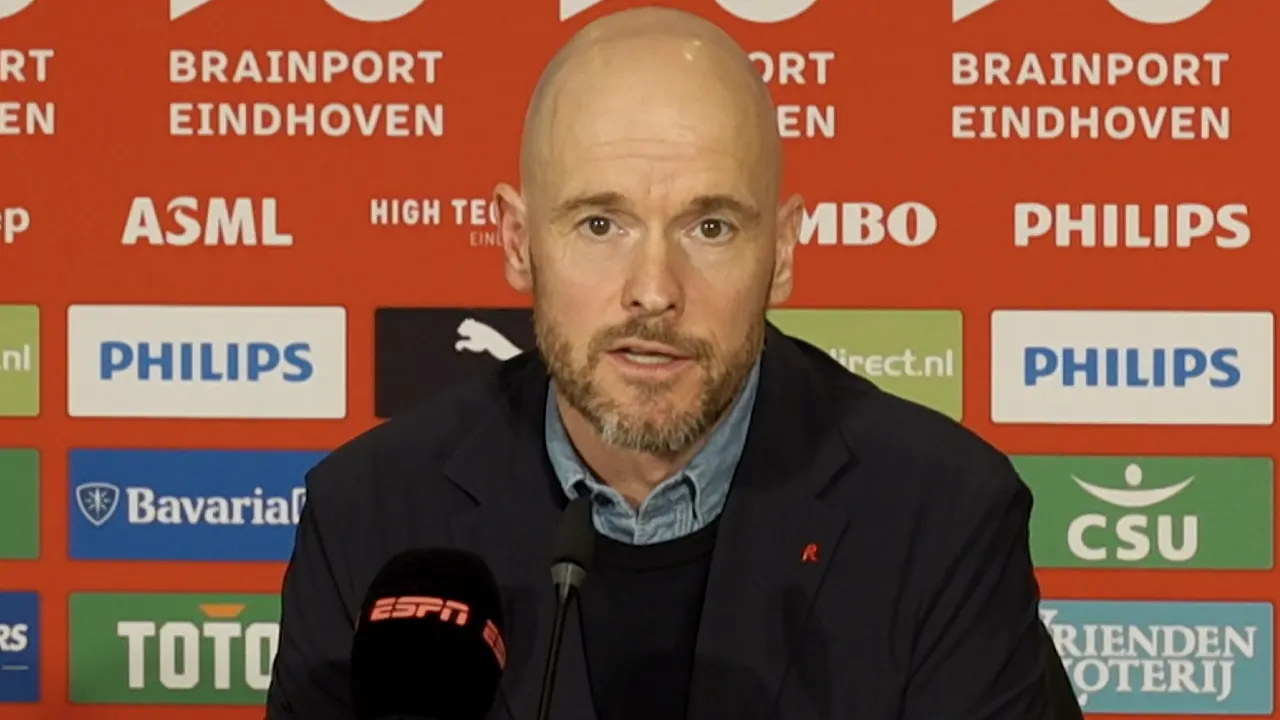 Erik ten Hag op de persconferentie na afloop van PSV-Ajax (1-1).