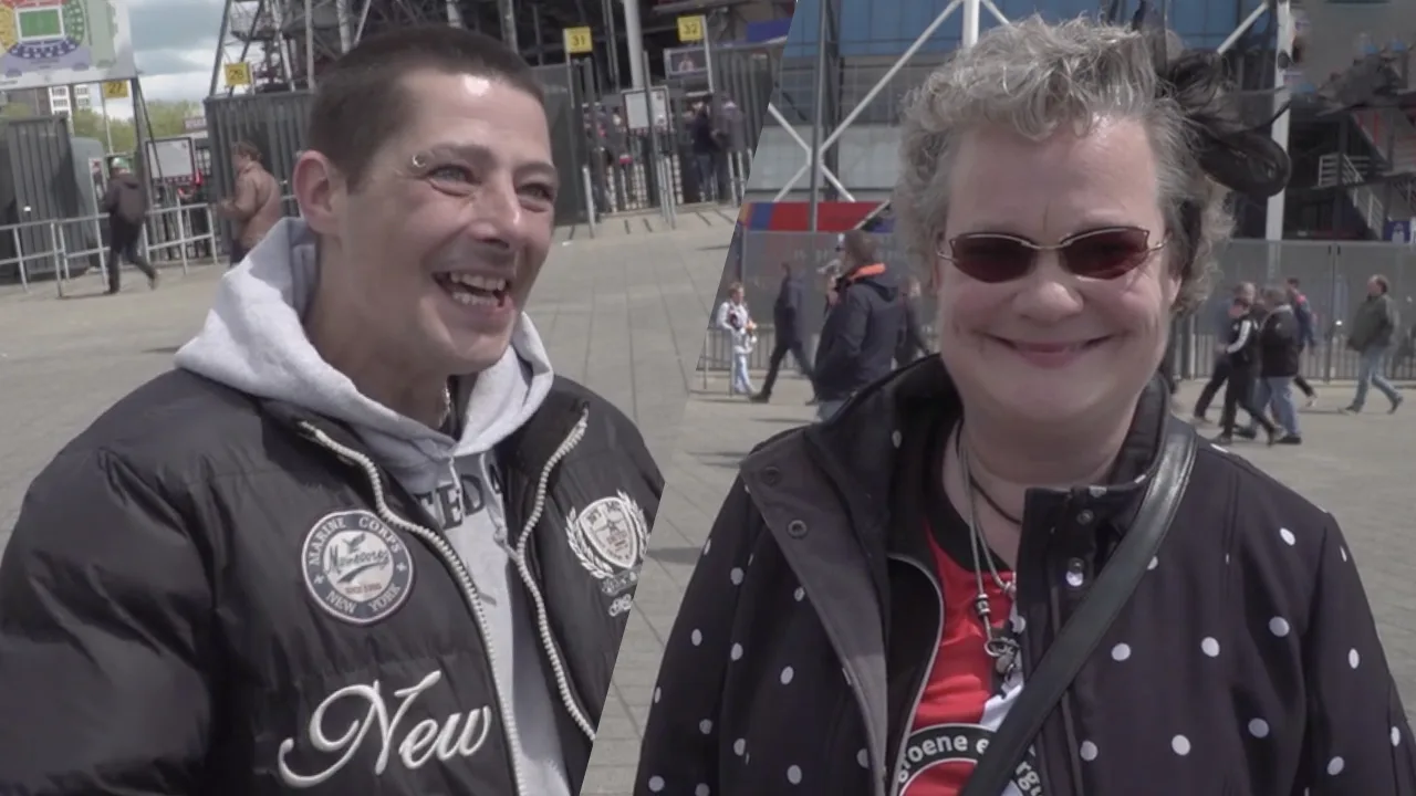 Verslaggever Frank Post in gesprek met Feyenoord fans over de uitschakeling van Ajax in de Champions League.