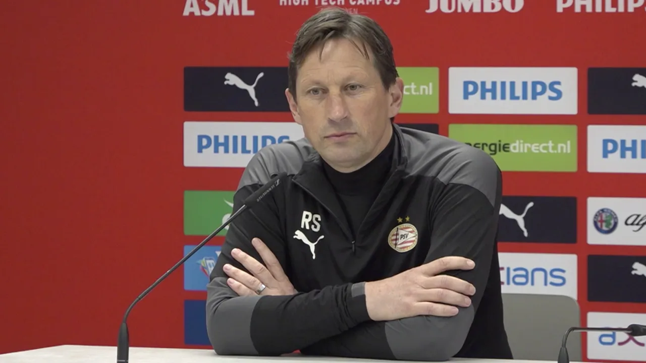 Roger Schmidt op de persconferentie in aanloop naar PSV-Feyenoord.