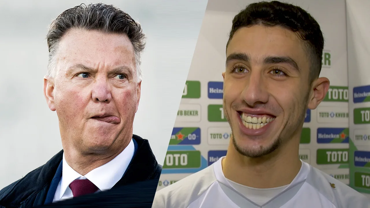 Verslaggever Joey Dekker in gesprek met Telstar-spelers Reda Kharchouch en Frank Korpershoek na afloop van het bekerduel tegen Ajax.