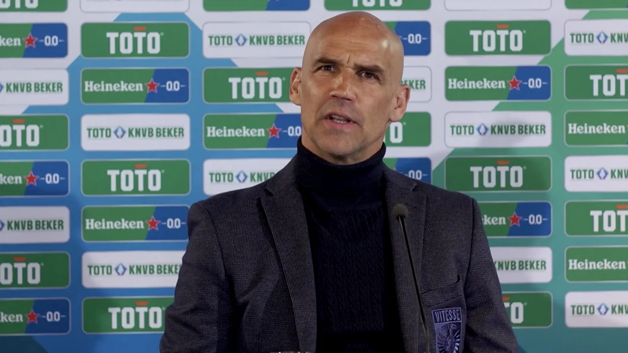 Thomas Letsch op de persconferentie in aanloop naar de bekerfinale tussen Ajax en Vitesse.
