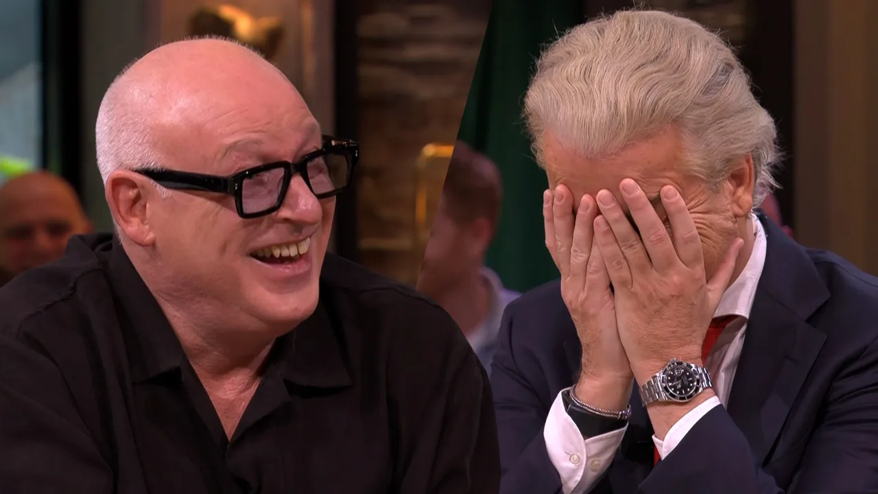 Geert Wilders slaat de handen voor het gezicht na een opmerking van René van der Gijp over Dion Graus.