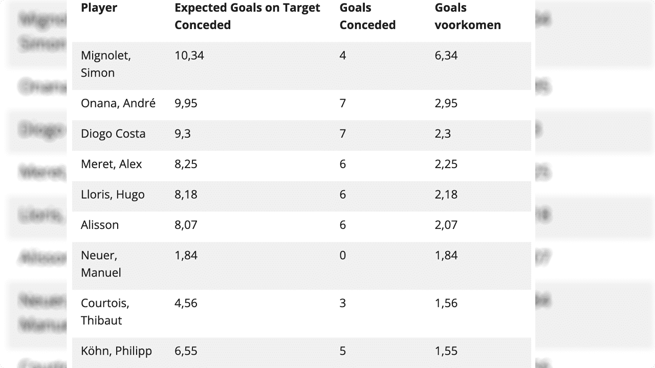 Van alle Champions League-doelmannen heeft alleen Club Brugge-keeper Simon Mignolet in de groepsfase meer reddingen verricht dan de doelman van Inter. Volgens de onderstaande ranglijst voorkwam Onana ook hoogstpersoonlijk drie doelpunten en staat daarmee op de tweede plek achter de Belg. De statistiek geeft het verschil aan tussen het aantal verwachte tegengoals en het daadwerkelijke aantal tegendoelpunten.