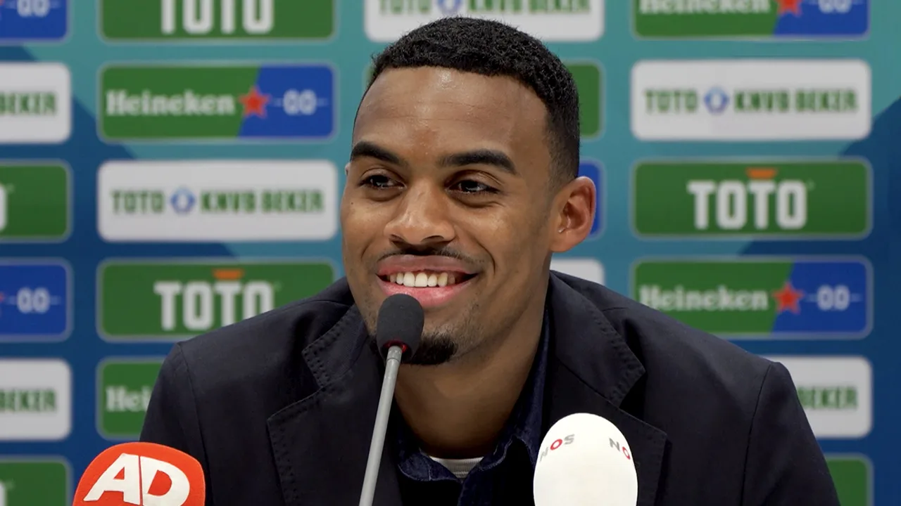 Ajax-speler Ryan Gravenberch op de persconferentie na afloop van het bekerduel met AZ (0-2).