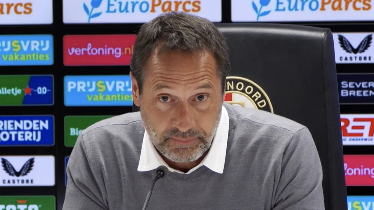 John van 't Schip in gesprek met Noa Vahle op de persconferentie na afloop van Feyenoord - Ajax.