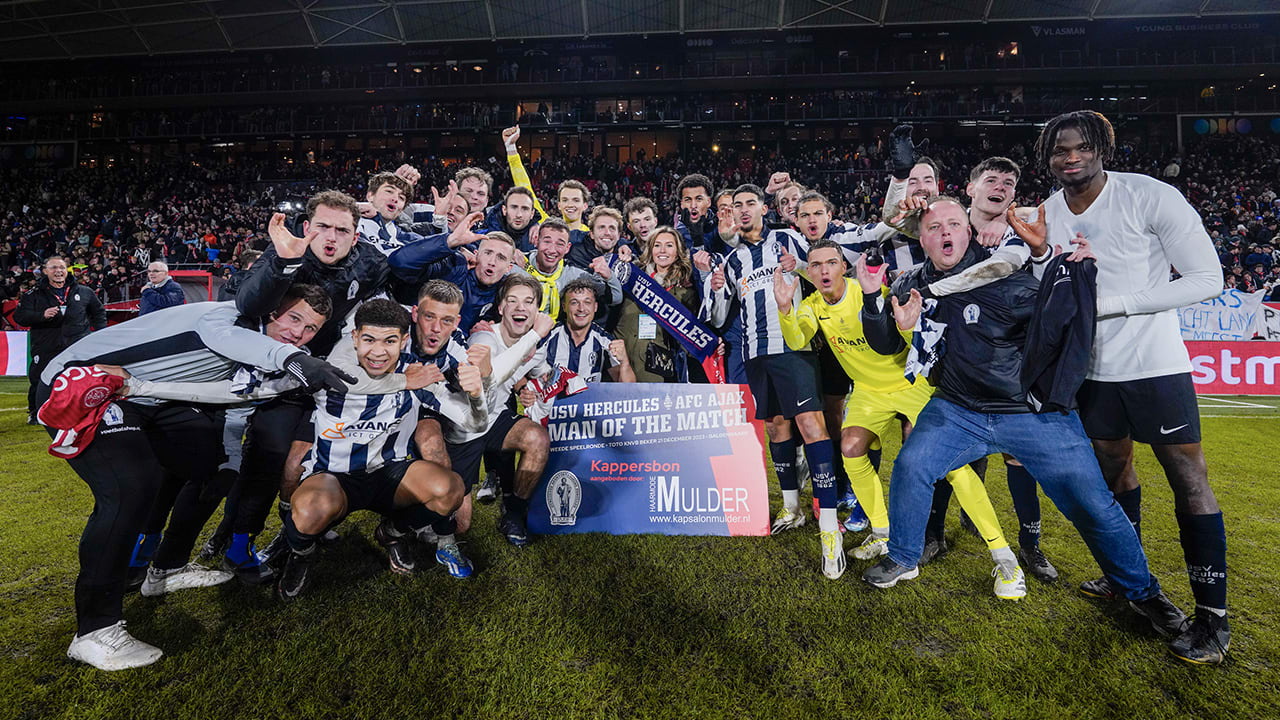 Hoe dan ook is het bekertoernooi voor de Derde Divisie-club al geslaagd. "Niemand pakt ons Ajax meer af. We kunnen niet meer verliezen, ook niet als we dat met 0-6 doen. Maar we moeten er wel alles aan doen om te winnen", aldus Hercules-trainer Van der Kooij.