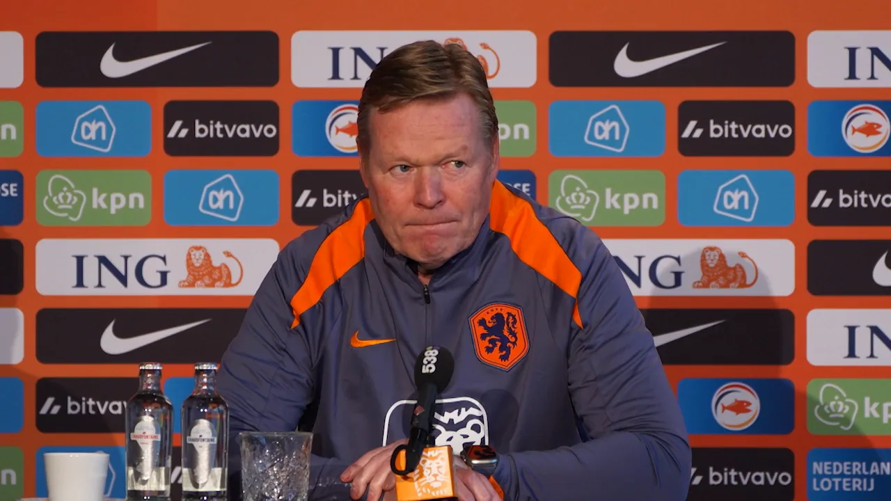 Bondscoach Ronald Koeman blikt vooruit op de oefenwedstrijden van het Nederlands elftal tegen Schotland en Duitsland. Tijdens de persconferentie geeft hij onder andere antwoordt op de vraag of dit Oranje een ploeg van wereldklasse is. Zie video hierboven.