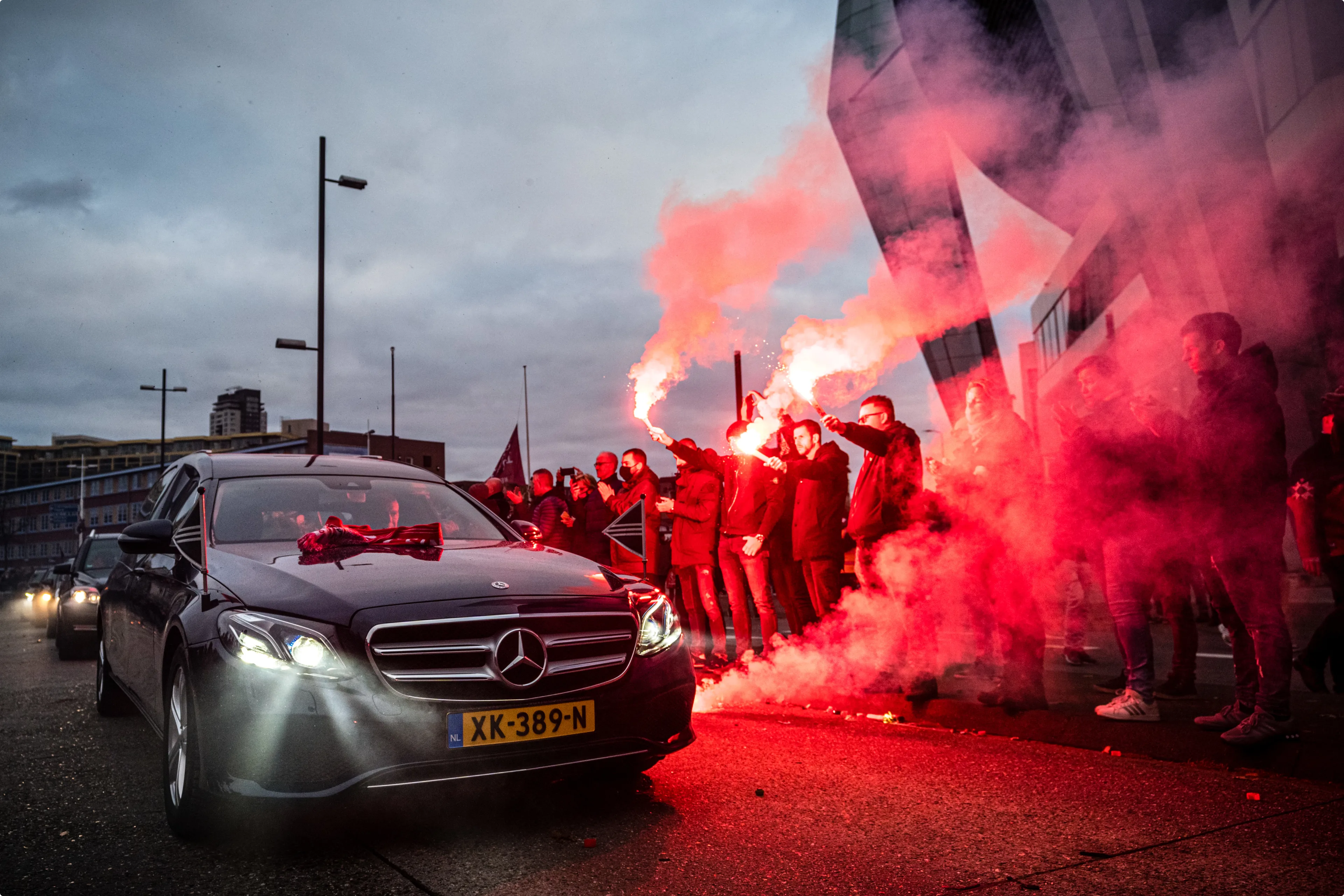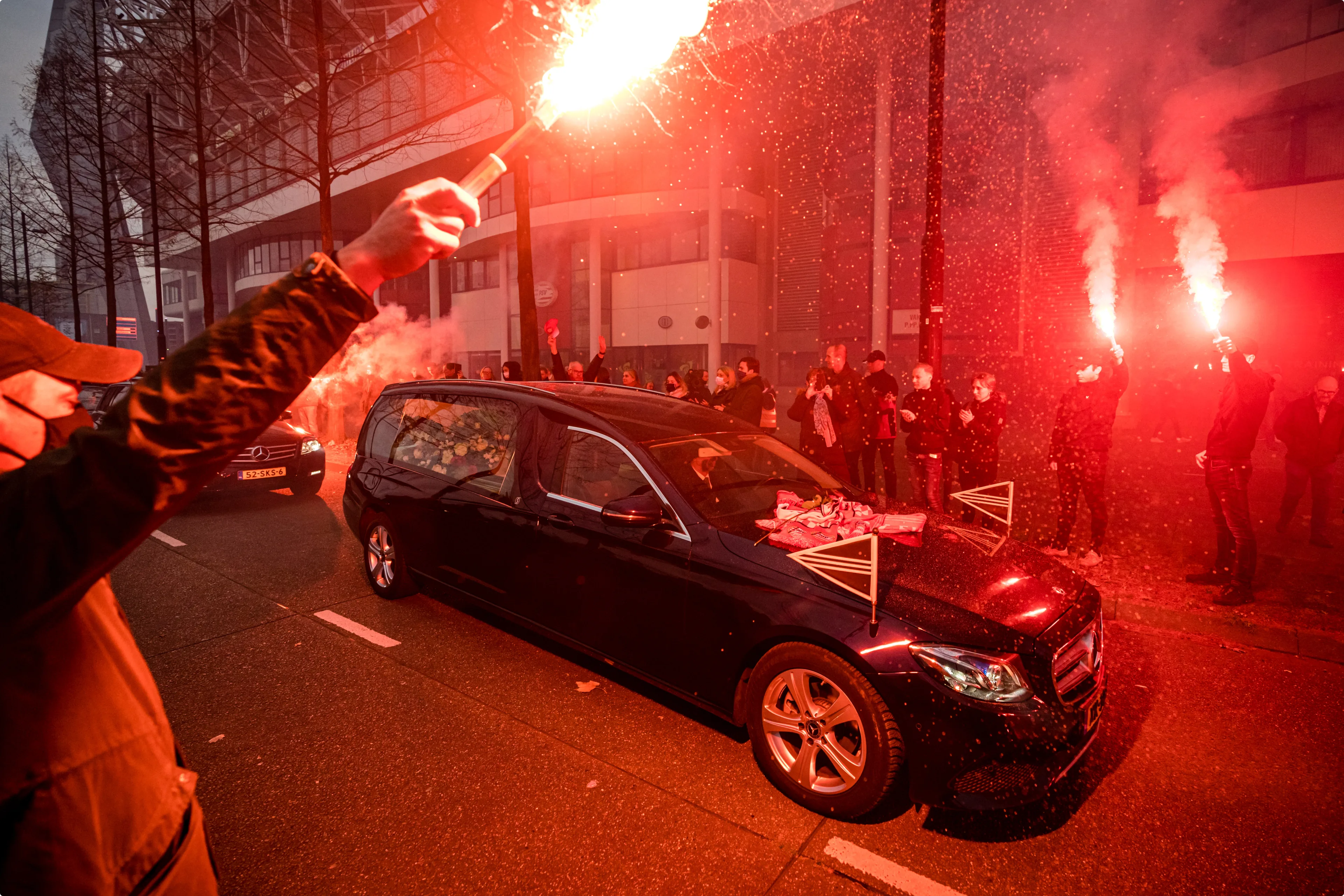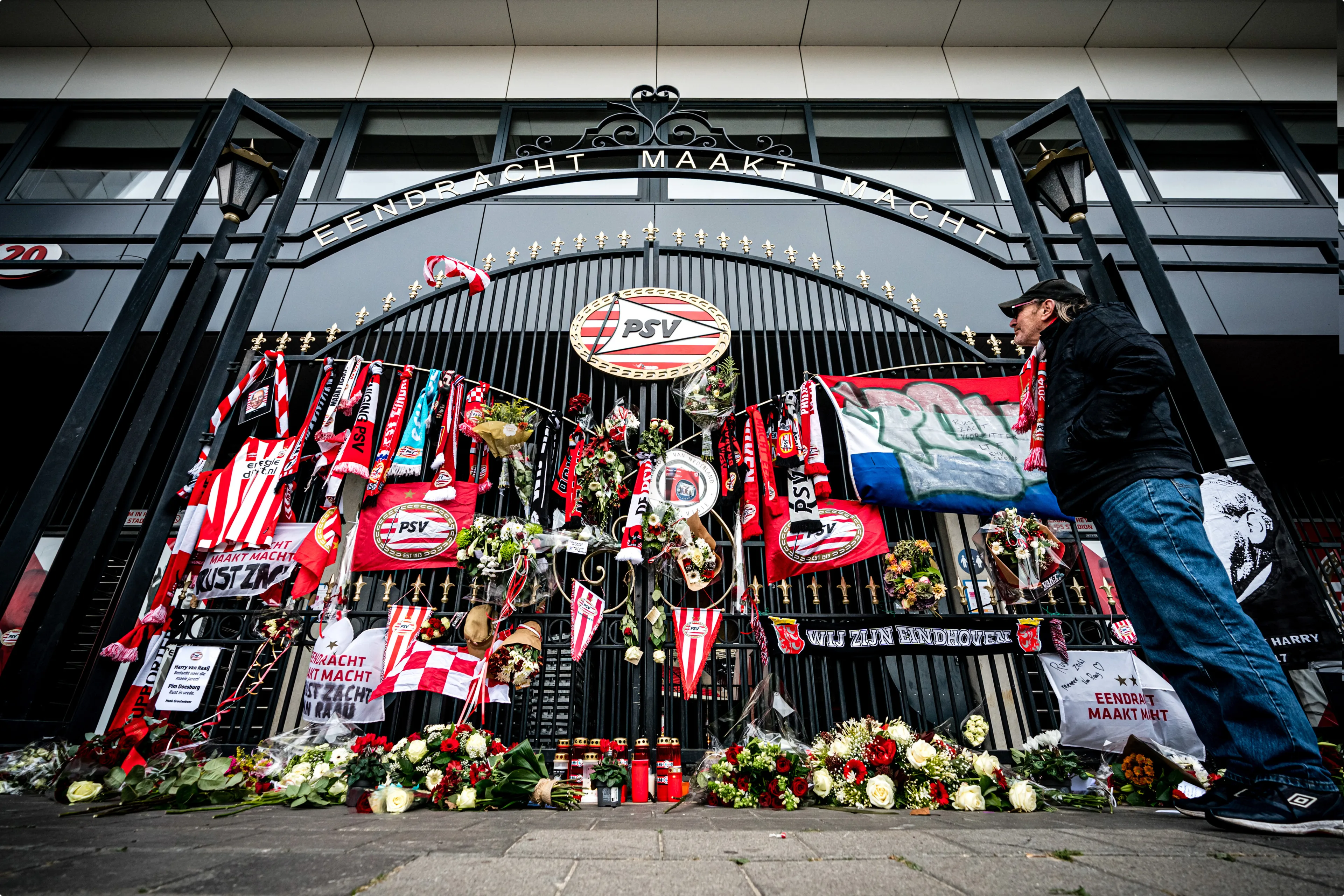 Honderden supporters van PSV hebben bij het Philips-stadion een laatste eerbetoon gebracht aan oud-voorzitter Harry van Raaij, die begin deze week op 84-jarige leeftijd overleed. Ze klapten, staken vuurwerk af en zwaaiden met vlaggen toen de rouwstoet langs het stadion reed. 'Harry, voor altijd PSV'er', stond op een spandoek. Het karakteristieke hek voor het Philips-stadion met daarop de tekst 'Eendracht maakt macht' hing vol sjaals, vlaggen en bloemen.