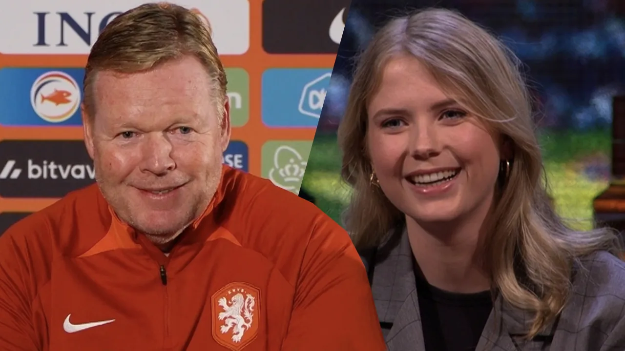 Noa Vahle in gesprek met Ronald Koeman in aanloop naar het EK-kwalificatieduel met Frankrijk.