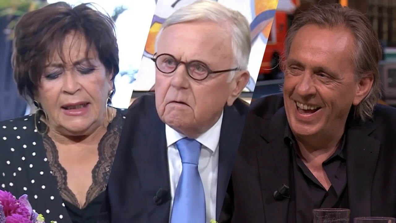 Marcel en Gijs genieten van een gesprek tussen Harry Mens en paragnost Liesbeth van Dijk bij Business Class.