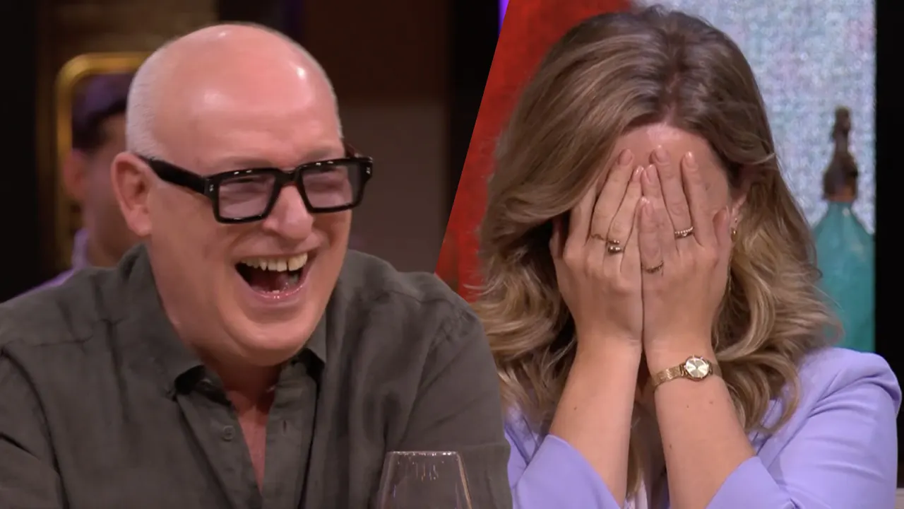 Merel Ek trapt vol in een grapje van René van der Gijp.