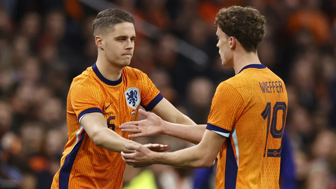 Nederland: Verbruggen; Dumfries, De Ligt, Van Dijk, Aké en Blind; Schouten, Reijnders en Veerman; Malen en Depay