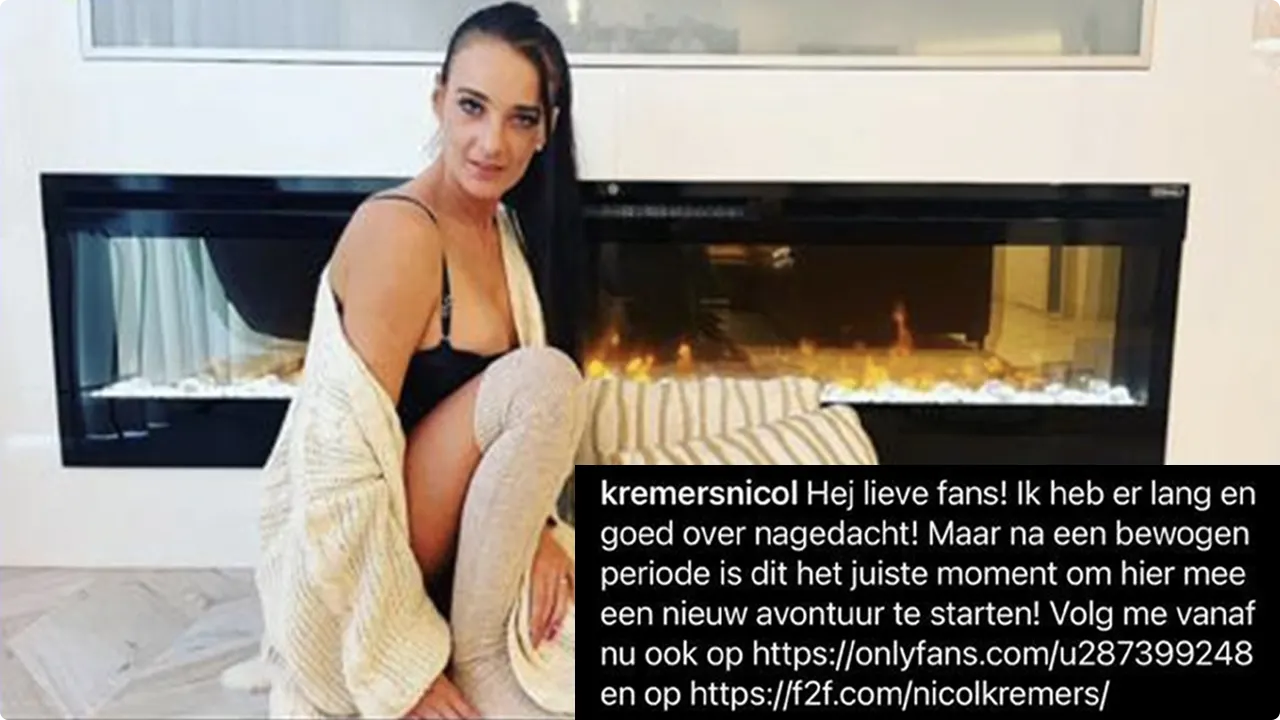 Bij een foto van zichzelf schreef Nicol: "Hej lieve fans! Ik heb er lang en goed over nagedacht! Maar na een bewogen periode is dit het juiste moment om hier mee een nieuw avontuur te starten! Volg me vanaf nu ook op OnlyFans."