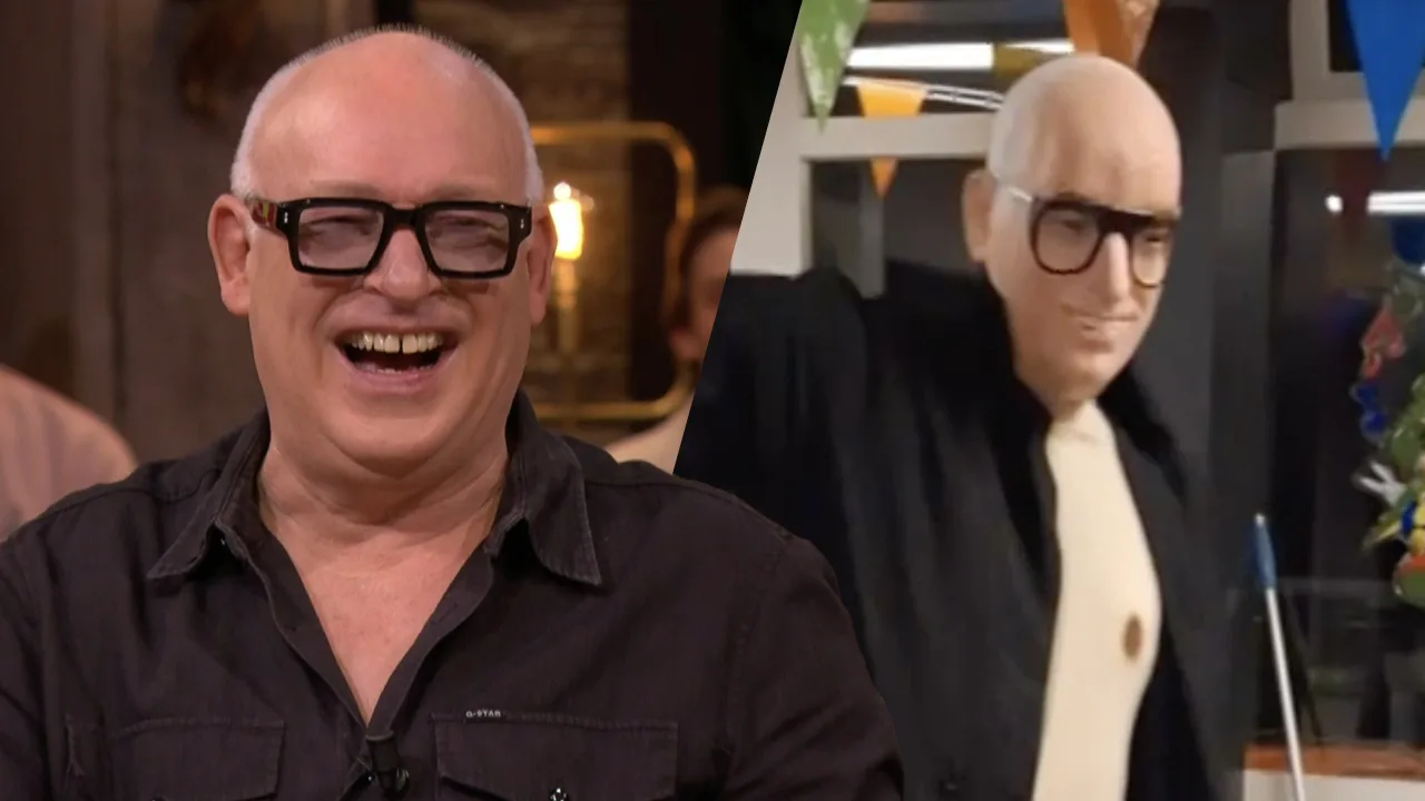 René moet lachen om bijzondere beelden van een man met een Van der Gijp-carnavalsmasker. De maskers van het Vandaag Inside-trio zijn te koop via vandaaginside.shop!