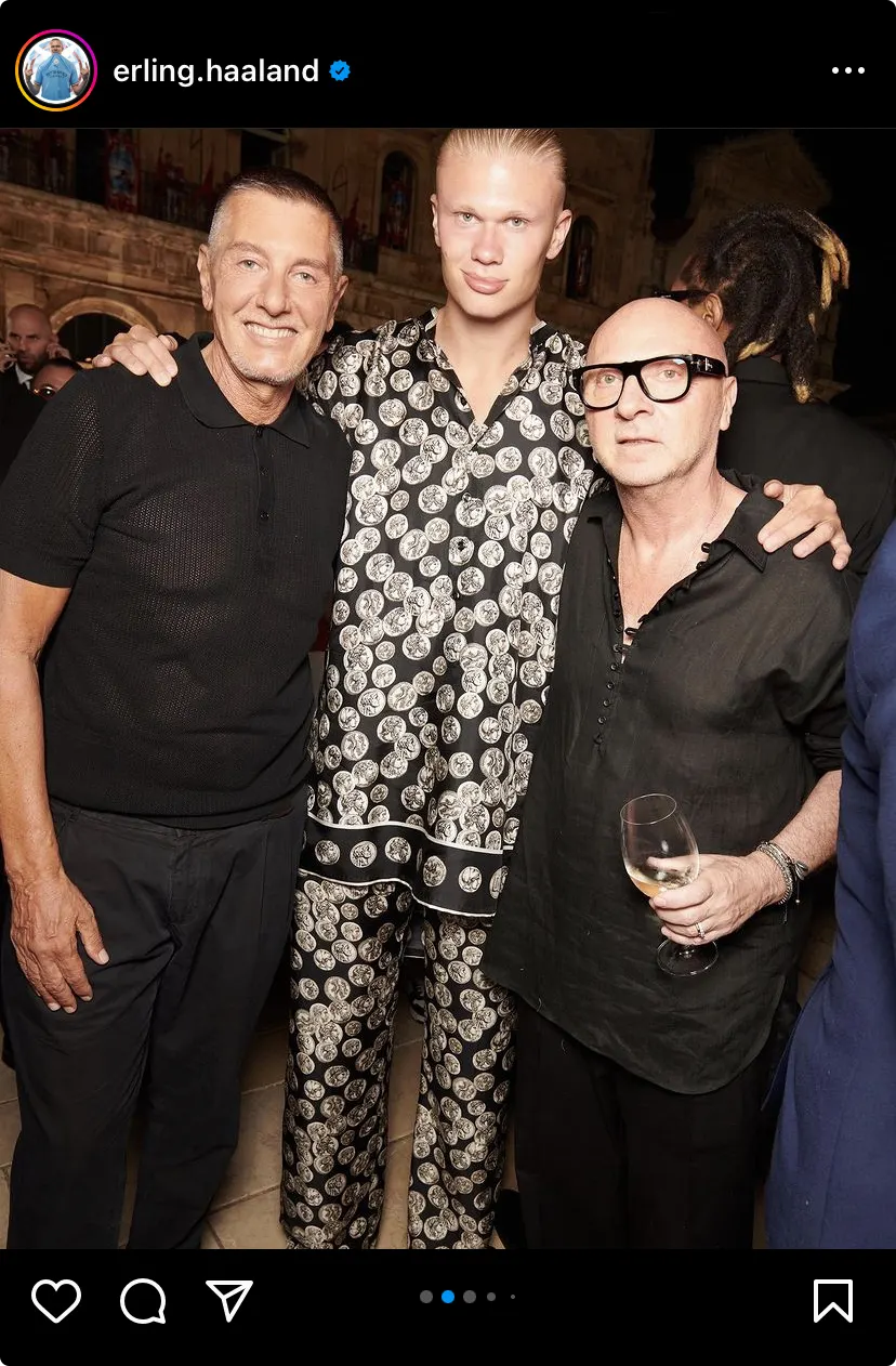 Haaland was aanwezig bij een evenement van Dolce & Gabbana en plaatste daarvan enkele foto's op Instagram. Op een van de foto's poseert hij met Stefano Gabbana en Domenico Dolce, en volgens verschillende Vandaag Inside-volgers heeft laatstgenoemde op deze foto verdacht veel weg van René van der Gijp (met een serieuze blik.)
