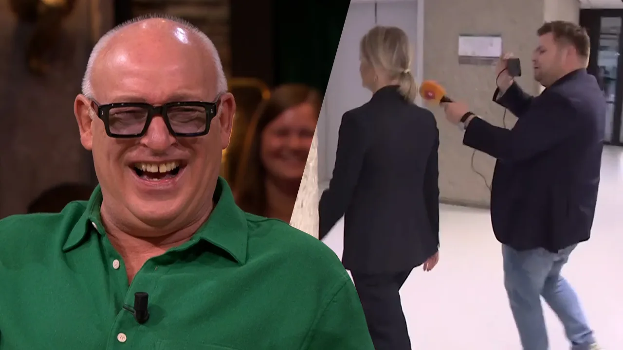 René moet lachen om beelden van politiek verslaggever Thomas van Groningen, die tegenwoordig met een mobieltje opnames maakt.