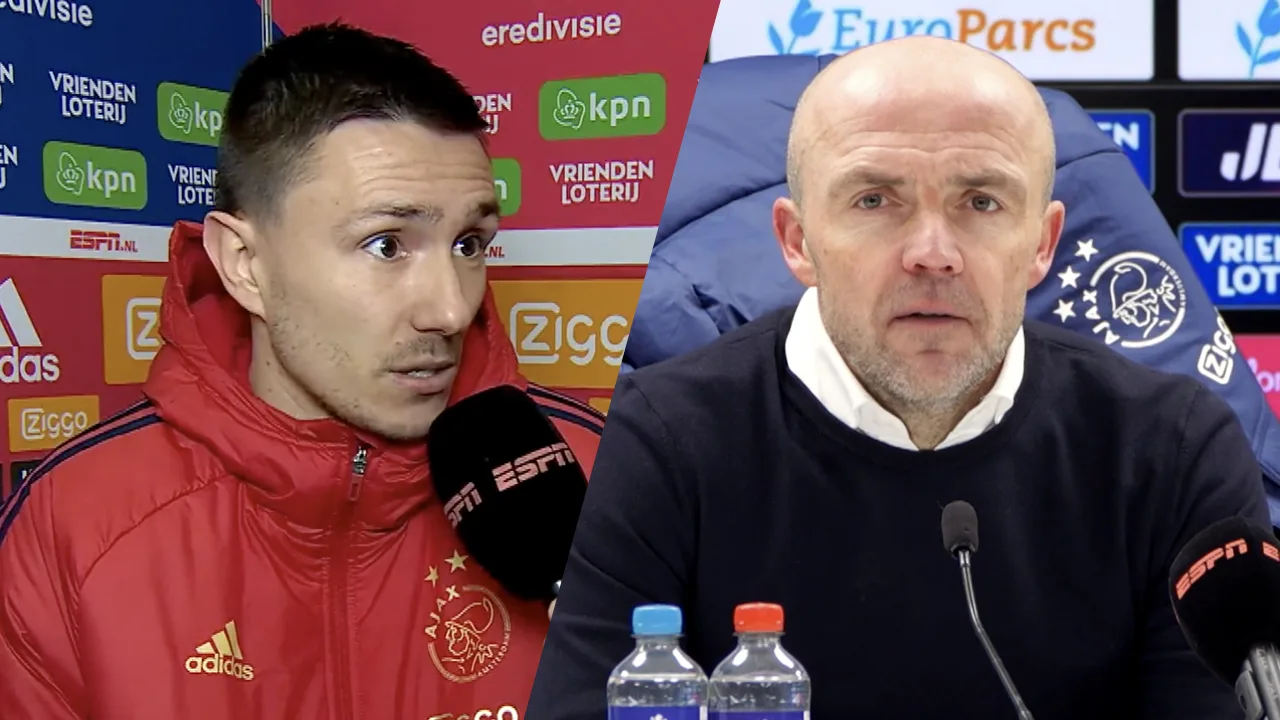 Ajax-trainer Alfred Schreuder op de persconferentie na afloop van de wedstrijd tussen Feyenoord en Ajax (1-1).