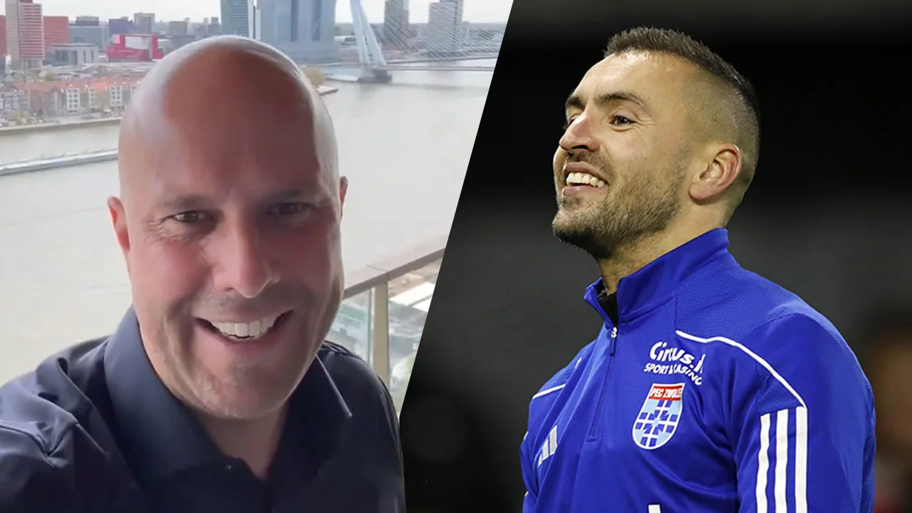 “Goedemiddag, hier vanuit Rotterdam. Dat klinkt gek voor iemand die achttien jaar in het eerste elftal van Zwolle heeft gespeeld, maar hier in Rotterdam heb jij waarschijnlijk je allermooiste moment als profvoetballer meegemaakt en dat was in De Kuip", begint Slot. "Waar jullie het voor elkaar kregen om met 5-1 van Ajax te winnen en je zelf ook nog een goal maakte. Ik denk dat ik namens jou spreek als ik zeg dat dát jouw allermooiste moment is in je Zwolse periode, maar achttien jaar betaald voetbal is ook écht een enorme prestatie."
