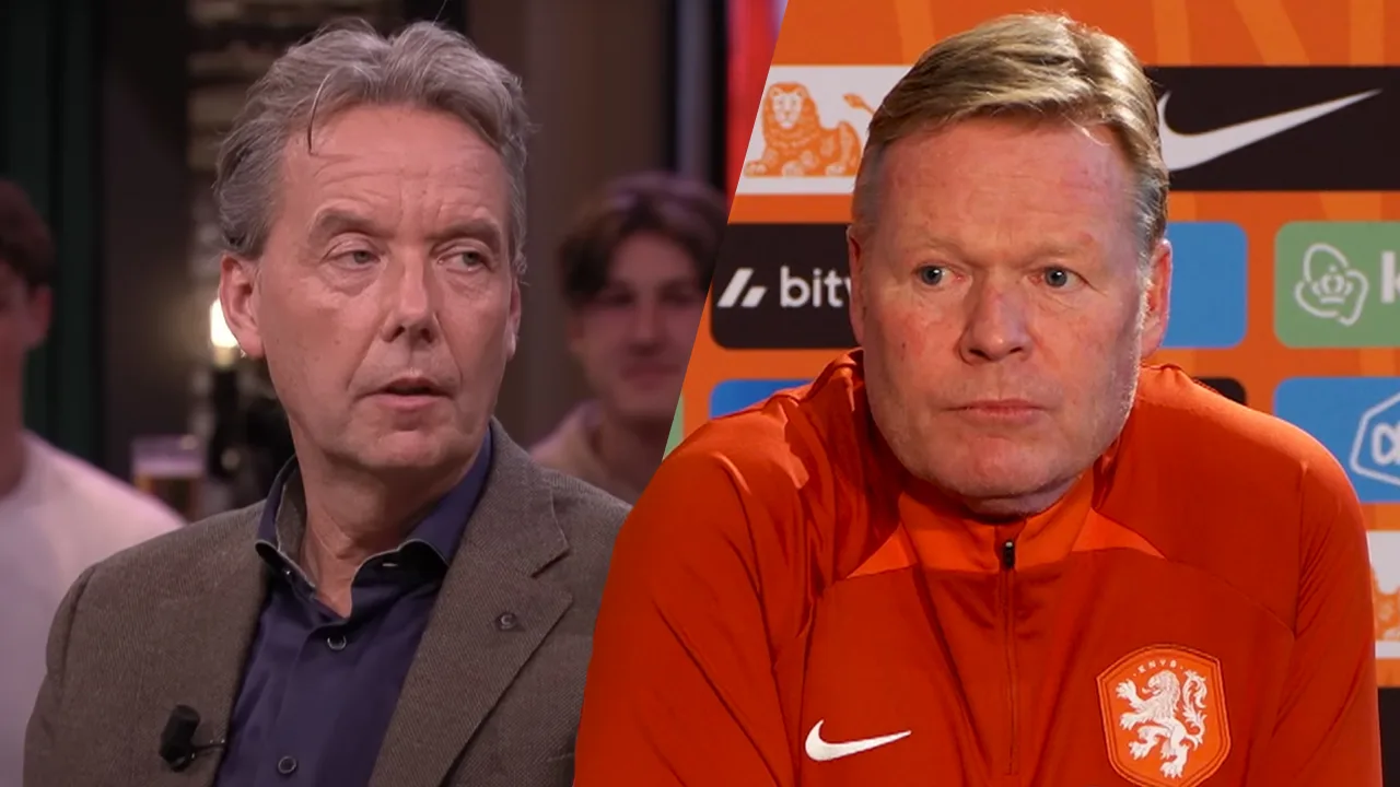 Valentijn Driessen in gesprek met bondscoach Ronald Koeman.
