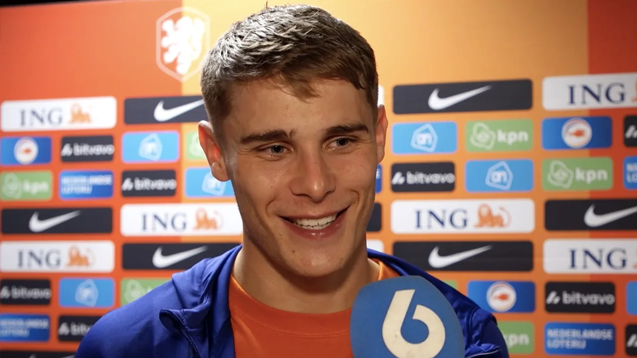 Noa Vahle in gesprek met Micky van de Ven na het EK-kwalificatieduel tussen Oranje en Frankrijk (1-2).