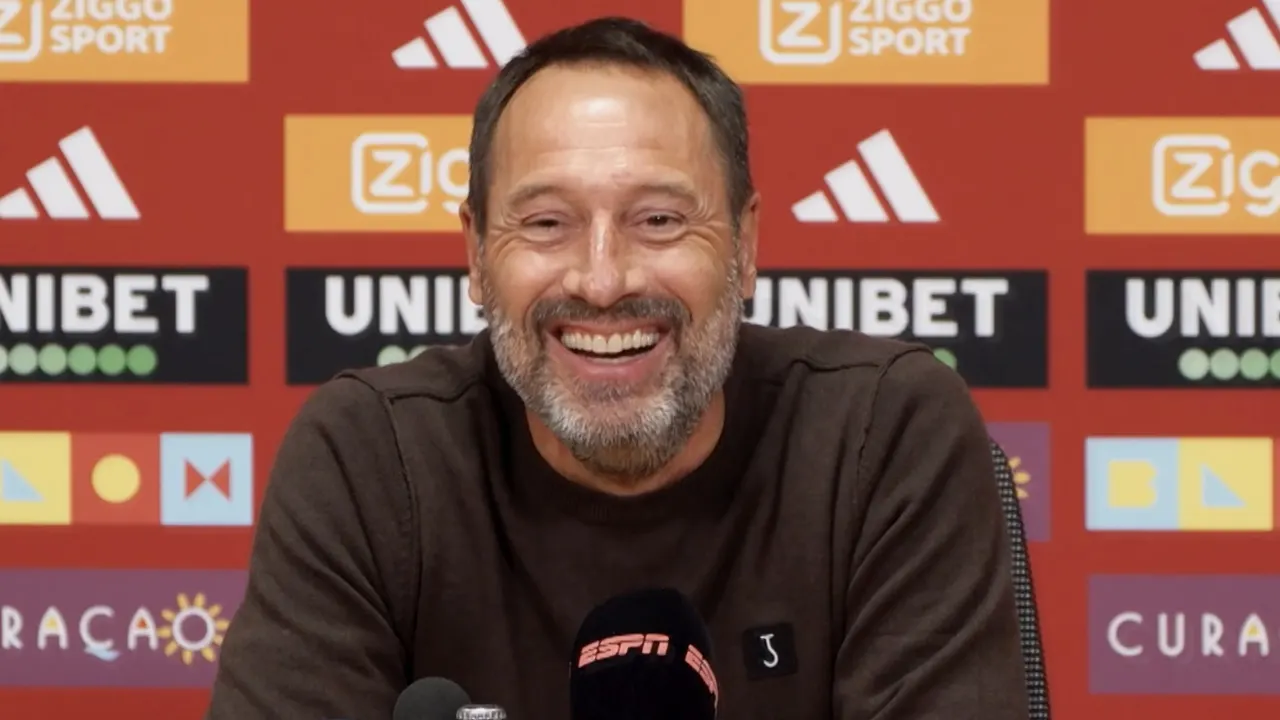 Johan van 't Schip vergist zich en geeft in het Engels antwoord op een Nederlandse vraag. Dit zorgt voor de nodige hilariteit tijdens de persconferentie voorafgaand aan Ajax - PSV.