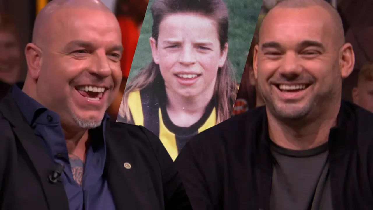 De Veronica Offside-tafel moet lachen om een jeugdfoto van Andy van der Meijde.