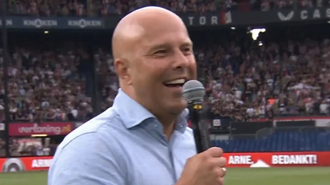 Mooie beelden uit De Kuip, waar de supporters van Feyenoord afscheid nemen van Arne Slot. De 45-jarige oefenmeester vertrekt na dit seizoen naar Liverpool om Jürgen Klopp te doen vergeten.