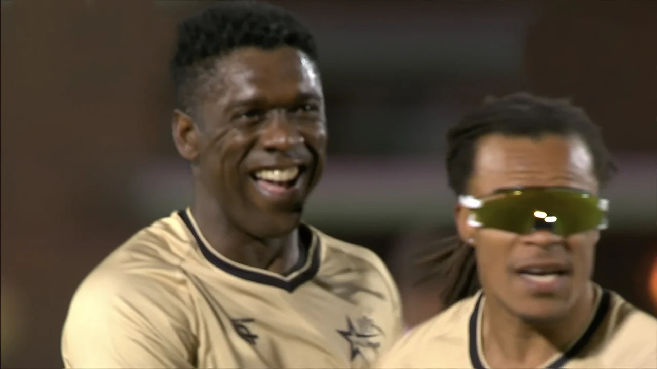 Clarence Seedorf met de gelijkmaker voor de BIF All Stars tegen de Ajax Legends: 1-1. Zie video hierboven.
