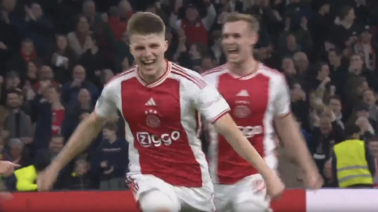 Anton Gaaei heeft Ajax met een prachtig doelpunt op een 1-0 voorsprong gezet tegen Go Ahead Eagles.
