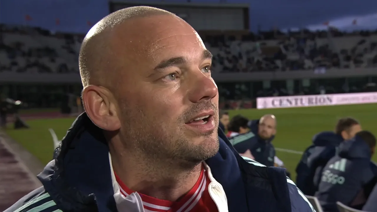 Wesley Sneijder in gesprek met Sam van Royen bij het duel tussen de BIF All Stars en de Ajax Legends. Zie video hierboven.