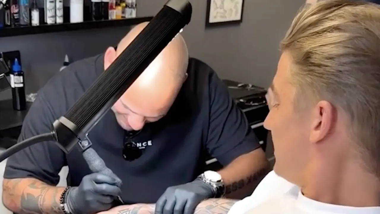 Mart Hoogkamer heeft een weddenschap van Wesley Sneijder verloren en moest daarom een tatoeage met de handtekening van de oud-topvoetballer op zijn lichaam laten zetten. Dat is te zien in een filmpje dat de twee woensdag op Instagram delen.
