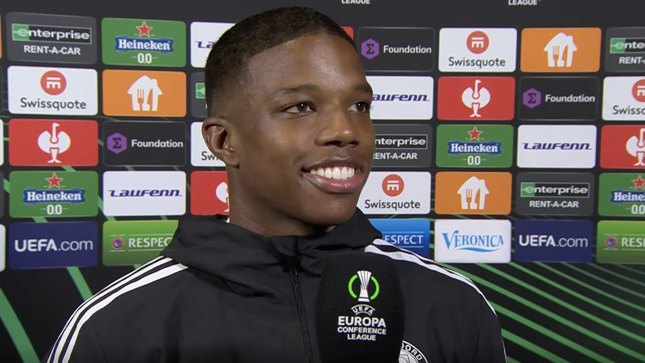 Tyrell Malacia na afloop van het duel tussen Feyenoord en Olympique Marseille.