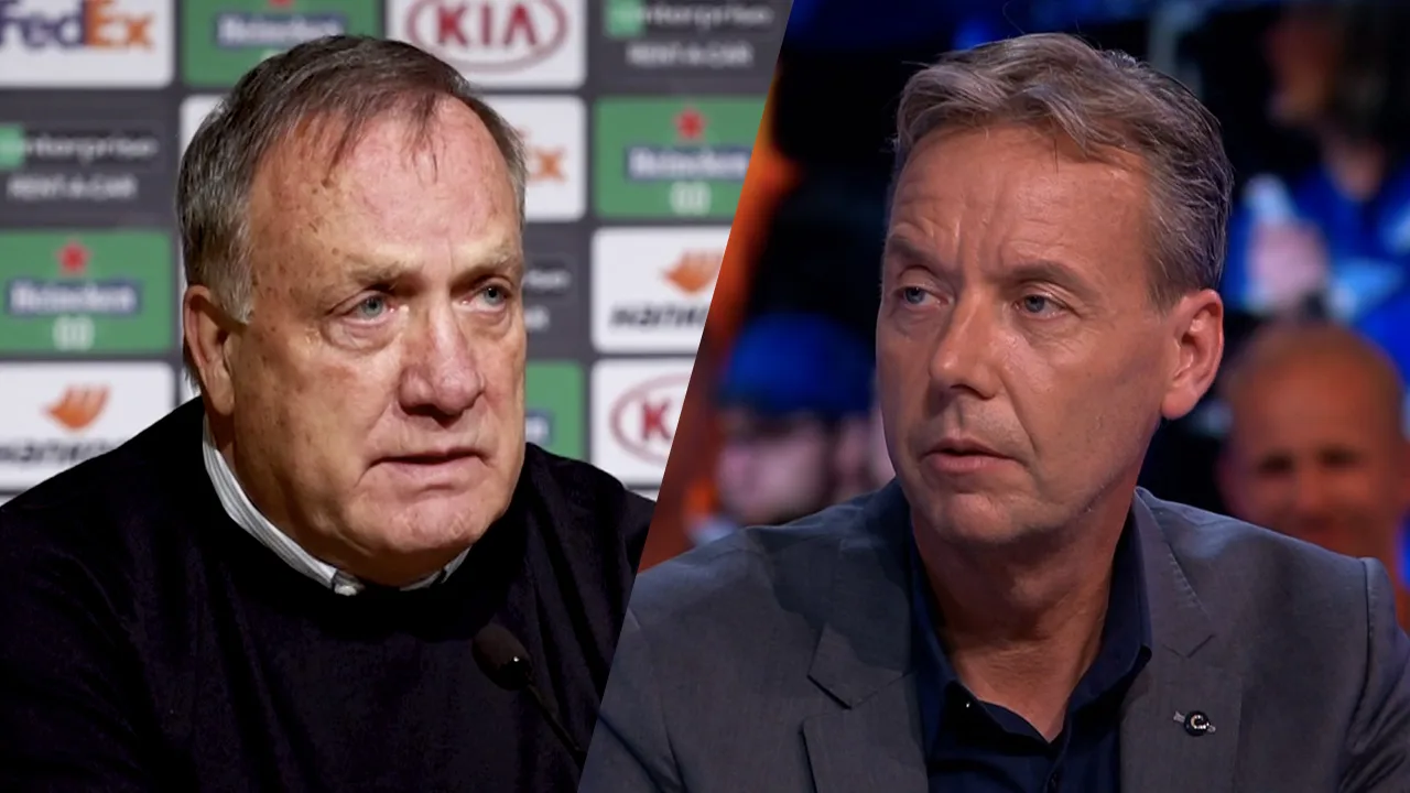 Feyenoord-coach Dick Advocaat geeft Valentijn Driessen een officiële waarschuwing na afloop van het verloren Europa League-duel tegen Wolfsberger AC.