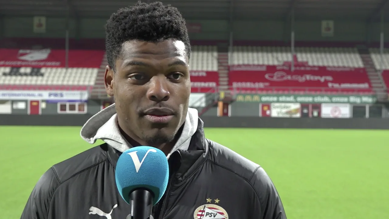 PSV-aanvoerder Denzel Dumfries na afloop van FC Emmen - PSV (0-2).