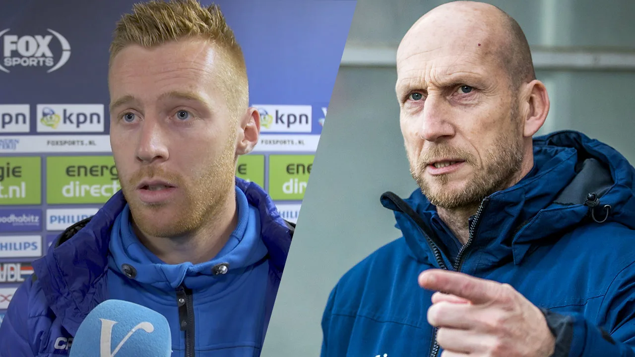 Verslaggever Joey Dekker spreekt met Mike van Duinen en Bram van Polen na afloop van PSV - PEC Zwolle.