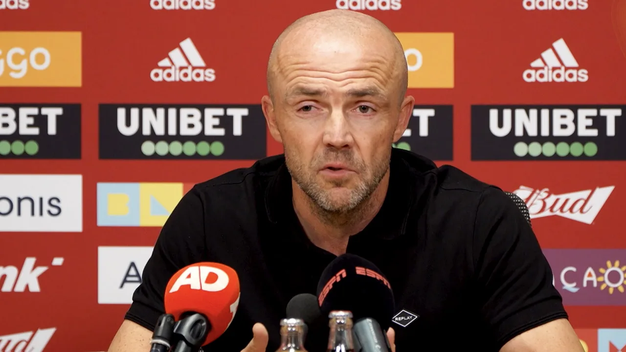 Ajax-trainer Alfred Schreuder op de persconferentie na afloop van de wedstrijd Ajax - SC Cambuur (4-0).