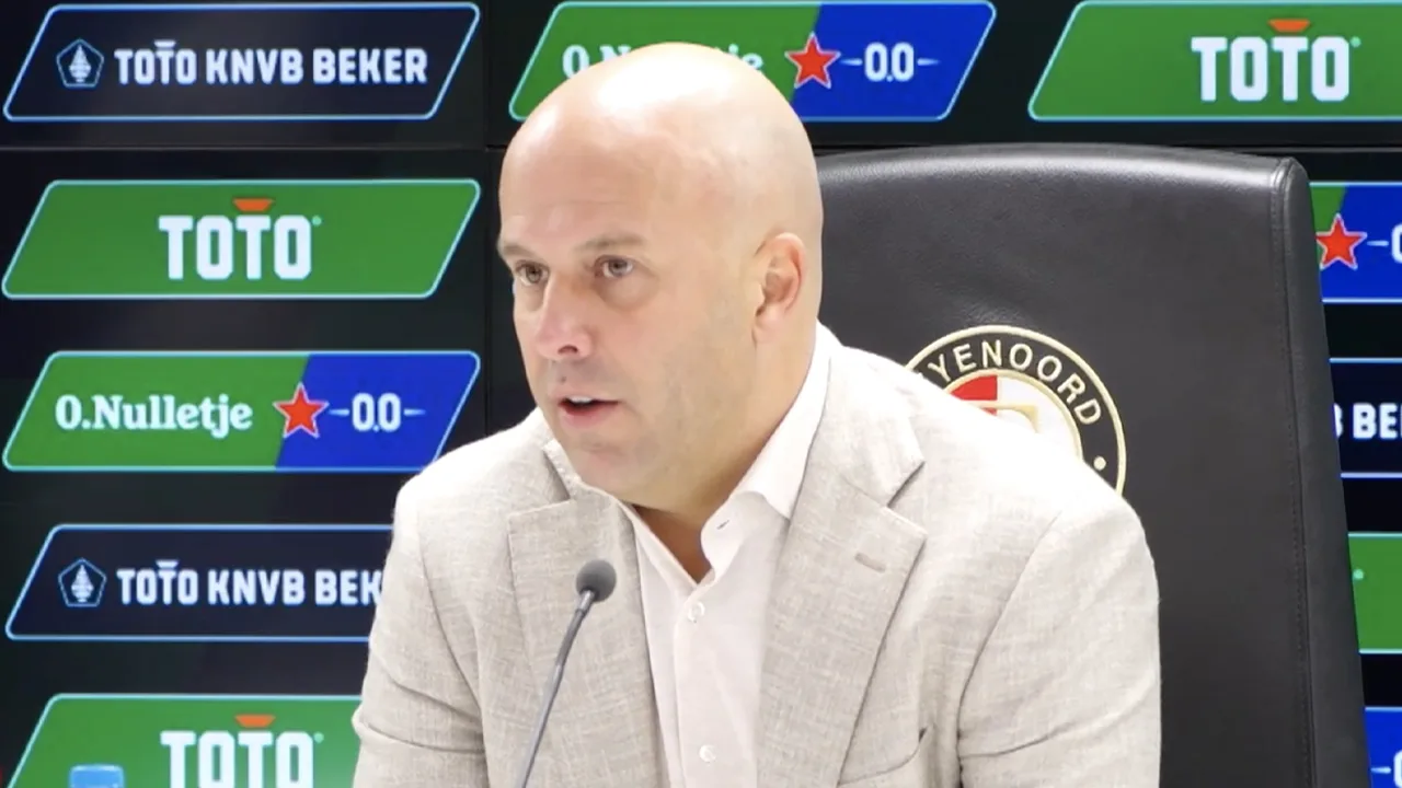 Arne Slot geeft na afloop van Feyenoord-AZ (2-0) een update over de blessure van Quinten Timber.