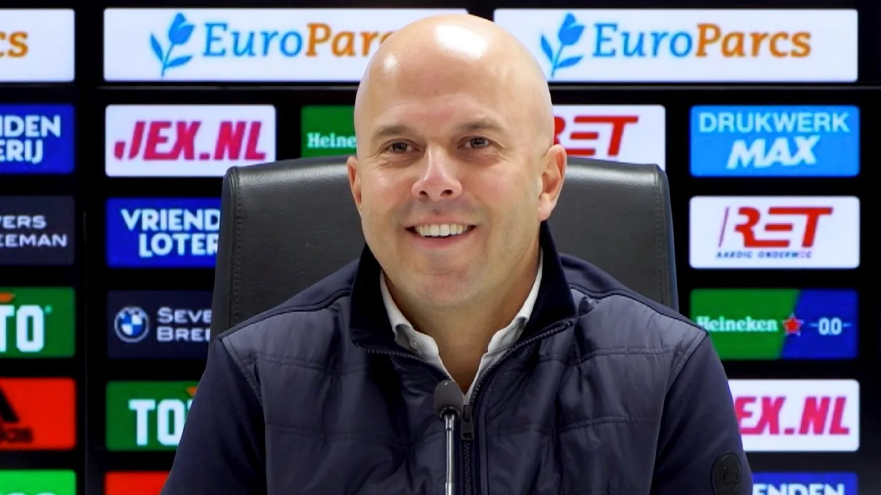 Arne Slot op de persconferentie na afloop van Feyenoord-PEC Zwolle (4-0).