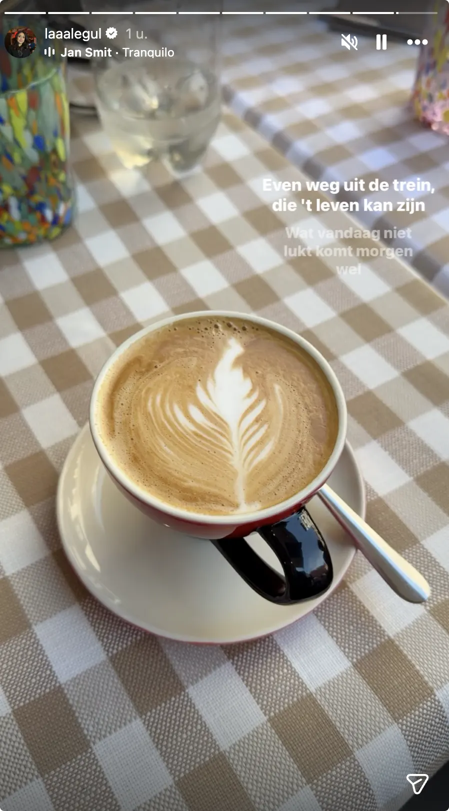 Maandagochtend plaatste Lale Gül opnieuw een story op Instagram. Daarop was alleen een kopje koffie te zien. Onder de foto zette Lale Gül het nummer 'Tranquilo' van Jan Smit...