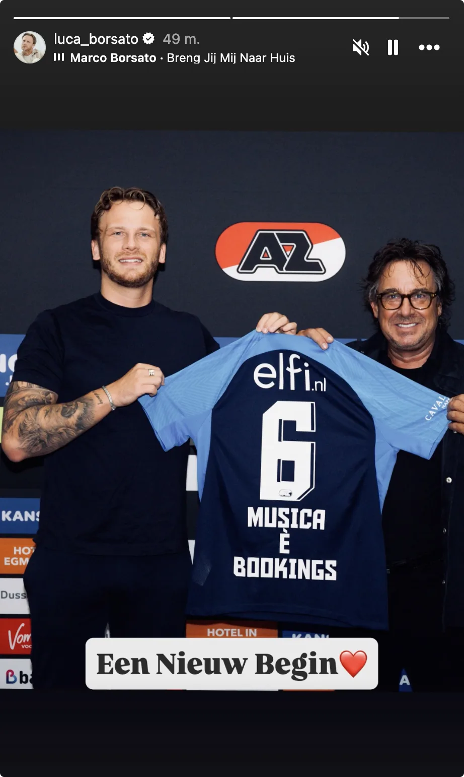 Luca Borsato laat na het nieuws van zich horen op Instagram. Hij plaatst een foto van hem en zijn vader als story en schrijft erbij: "Een nieuw begin ❤️." Bij de foto is het nummer 'Breng Jij Mij Naar Huis' van Marco Borsato te horen, waarin hij zingt: "Ik veeg mijn tranen weg, een nieuw begin, in m'n zoektocht naar de rust."