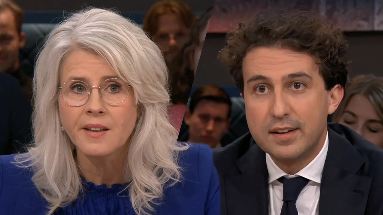 Jesse Klaver (GroenLinks-PvdA) en demissionair minister Mona Keijzer (BBB) hebben donderdagavond bij Pauw & De Wit een felle discussie gevoerd over de woningnood in Nederland.