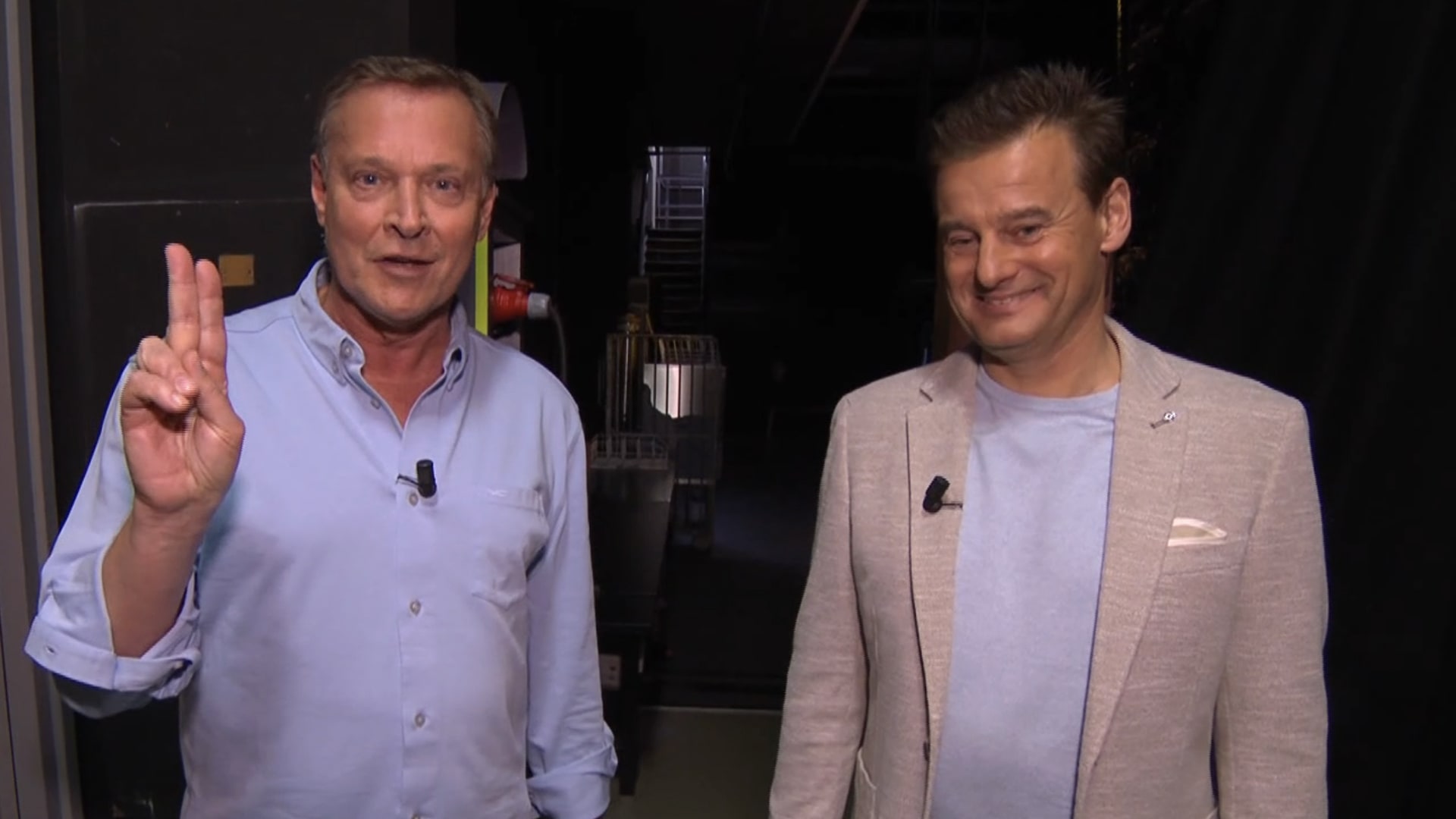 Albert dook de afgelopen dagen in allerlei tv-programma’s op. Is de theaterproducent annex presentator nu klaar met al die bezoekjes? “Nu is het helemaal klaar, ik ga nu heel braaf alleen maar hier zitten.” Albert richt zich vervolgens tot de kijkers van Vandaag Inside: “Ik beloof…”