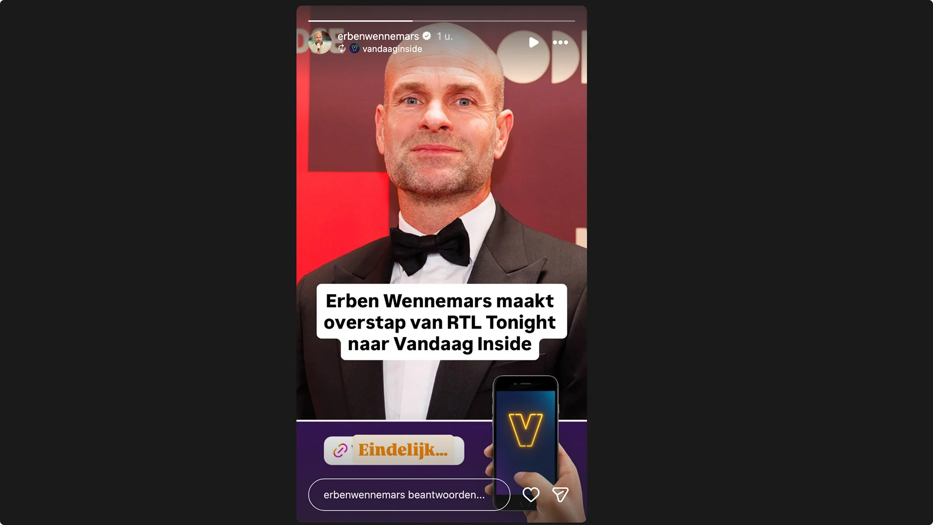 Erben Wennemars heeft via zijn Instagram Stories gereageerd op het nieuws dat hij de overstap maakt van RTL Tonight naar Vandaag Inside.